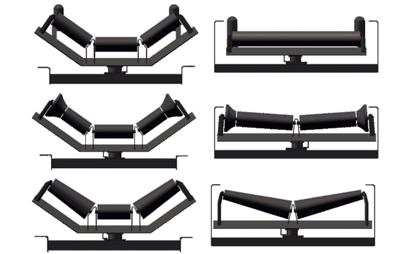 調(diào)心托輥組用來自動調(diào)節(jié)輸送帶跑偏,按工作原理分槽型調(diào)心托輥組、摩擦調(diào)心托輥組和錐型調(diào)心托輥組。按布置形式分為承載調(diào)心托輥組和回程調(diào)心托輥組。