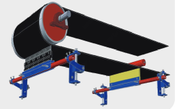 V型空段清掃器用于清除落到輸送帶下分支非工作面上的雜物以保護改向滾筒和輸送帶。